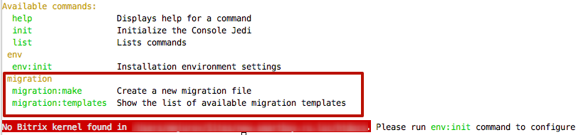 Так вот разделение команд на файловые и не файловые необходимо было для того, чтобы дать разработчикам возможность пользоваться файловыми командами миграций на своем локальном ПК даже не имея веб-сервера и битрикса. console-jedi устроен таким образом, что он будет работать и без битрикса, но команды будут доступны не все. Я решил использовать и эту возможность.